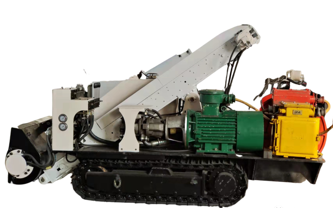 螺旋收集部采用液壓馬達(dá)驅(qū)動(dòng),安全可靠,裝載效率高;機(jī)體方便拆卸、運(yùn)輸、穩(wěn)定性高;履帶行走,機(jī)動(dòng)靈活,爬行能力強(qiáng);轉(zhuǎn)載部可向左、右各90°旋轉(zhuǎn),實(shí)現(xiàn)落煤點(diǎn)無死角;冷卻方式采用風(fēng)冷,這種風(fēng)冷方式結(jié)構(gòu)簡(jiǎn)單、體積小、重量輕、熱阻小、換熱面積大、 使用安裝方便、它的散熱效果較高。